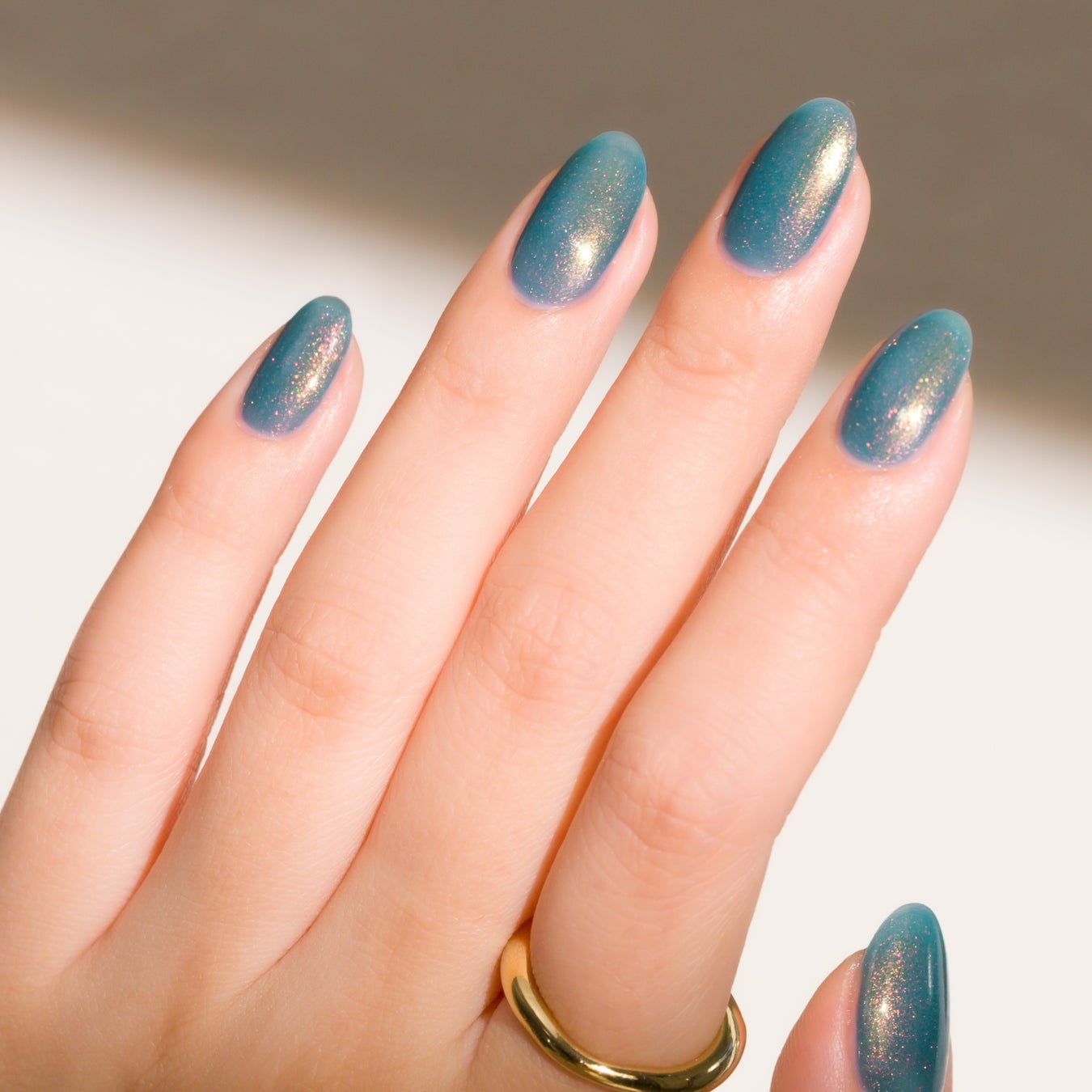 虹色の欠片が浮かぶようなゆらりと波打つディープブルー