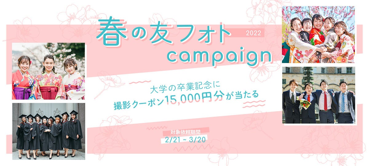 いわゆるキャンパスライフをめいっぱい謳歌できないまま、新たな門出を迎える学生に対し「OurPhoto」では、卒業という “今“しかない記念すべき瞬間を「写真として思い出に残して欲しい」と考え、友だち同士での思い出づくりを応援する「春の友フォトキャンペーン」を企画しました。