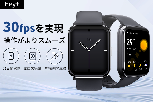21日間連続稼働可能な大画面スマートウォッチ「Hey+」あなたの気分や運動状況を感知し文字盤を自動的に変換可能