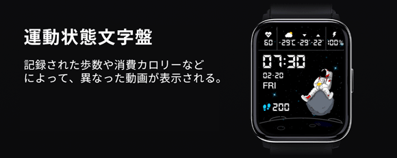 2. あなたの気分や運動状況を感知し自動的に文字盤変換可能。ご自身で撮った動画や写真も文字盤に設定可能。