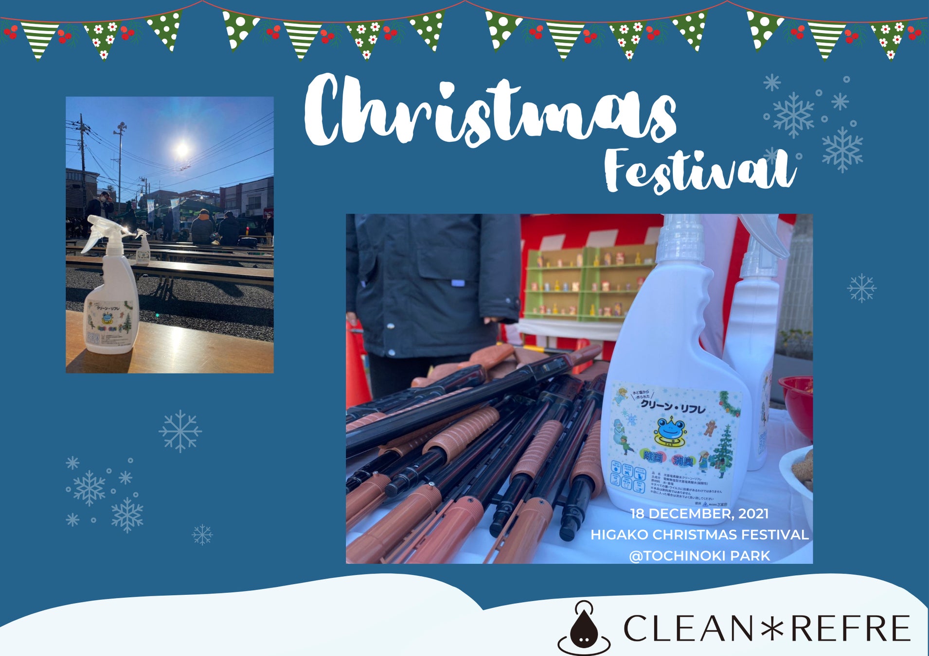 地域のクリスマスフェスティバルにクリーン・リフレのスプレーボトル20本を無償提供しました。