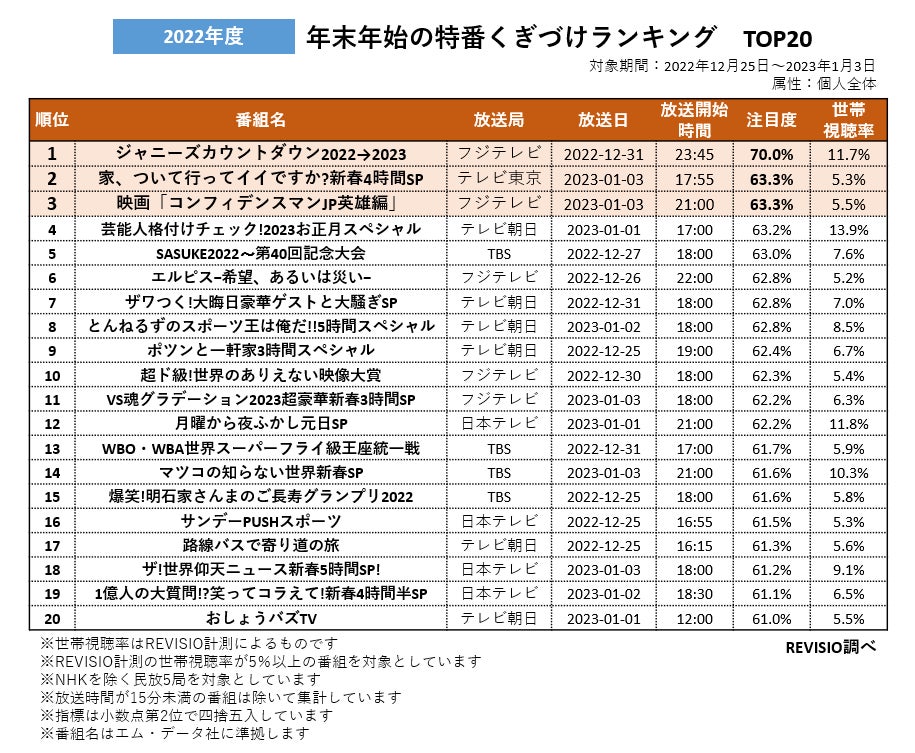 2022年度 年末年始の特番くぎづけランキング