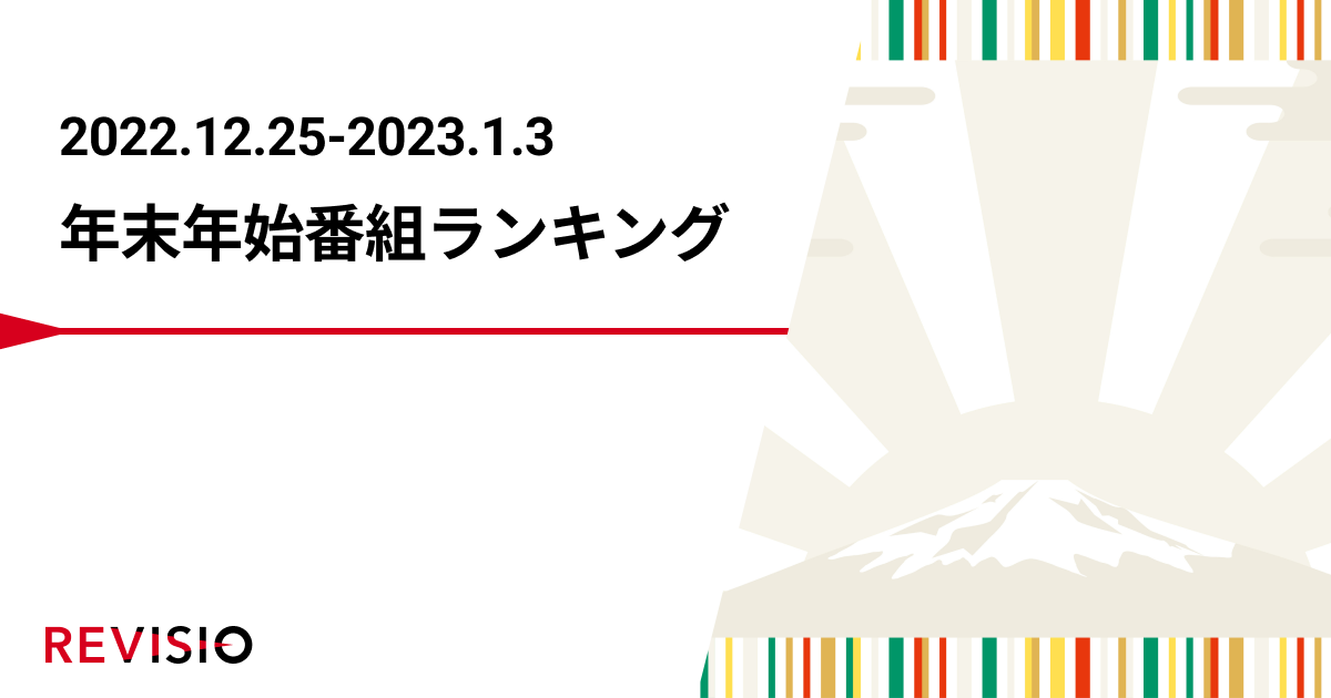 ご家庭に人体認識技術を搭載した機器を設置し、テレビスクリーンの「視られている量」を測るREVISIO(リビジオ)株式会社(所在地 :東京都千代田区、代表取締役社長 郡谷 康士、以下REVISIO)は、注目度を使って、2022年~2023年の年末年始によく見られた番組は何だったのかを振り返りました。注目度が高いとは、テレビの前の視聴者がくぎづけになっていたことを表します。