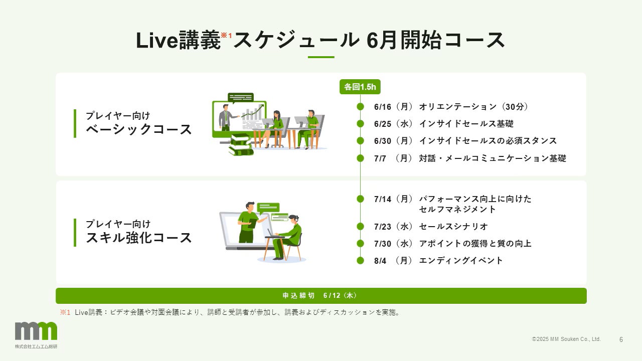 初回は2025年6月中旬より開催予定のため、参加をご希望の方はお早めのご検討をおすすめします。