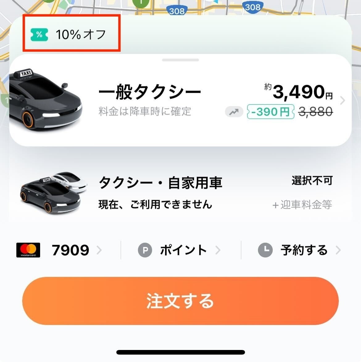 ・適用方法:アプリ決済を設定し注文、乗車完了時に自動適用