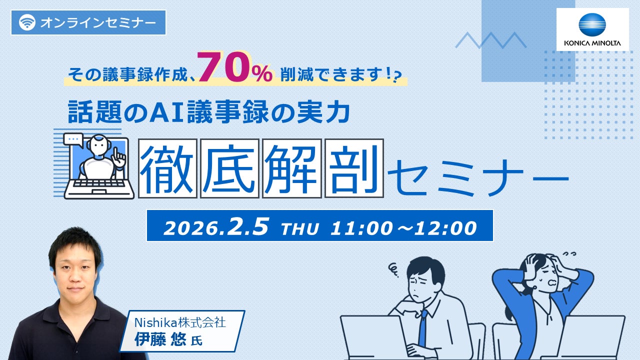 Nishika株式会社(本社:東京都港区、代表取締役:山下達朗 松田裕之)は、コニカミノルタジャパン株式会社と共同で、AIによる議事録作成の実力を徹底解説するオンラインセミナーを開催します。