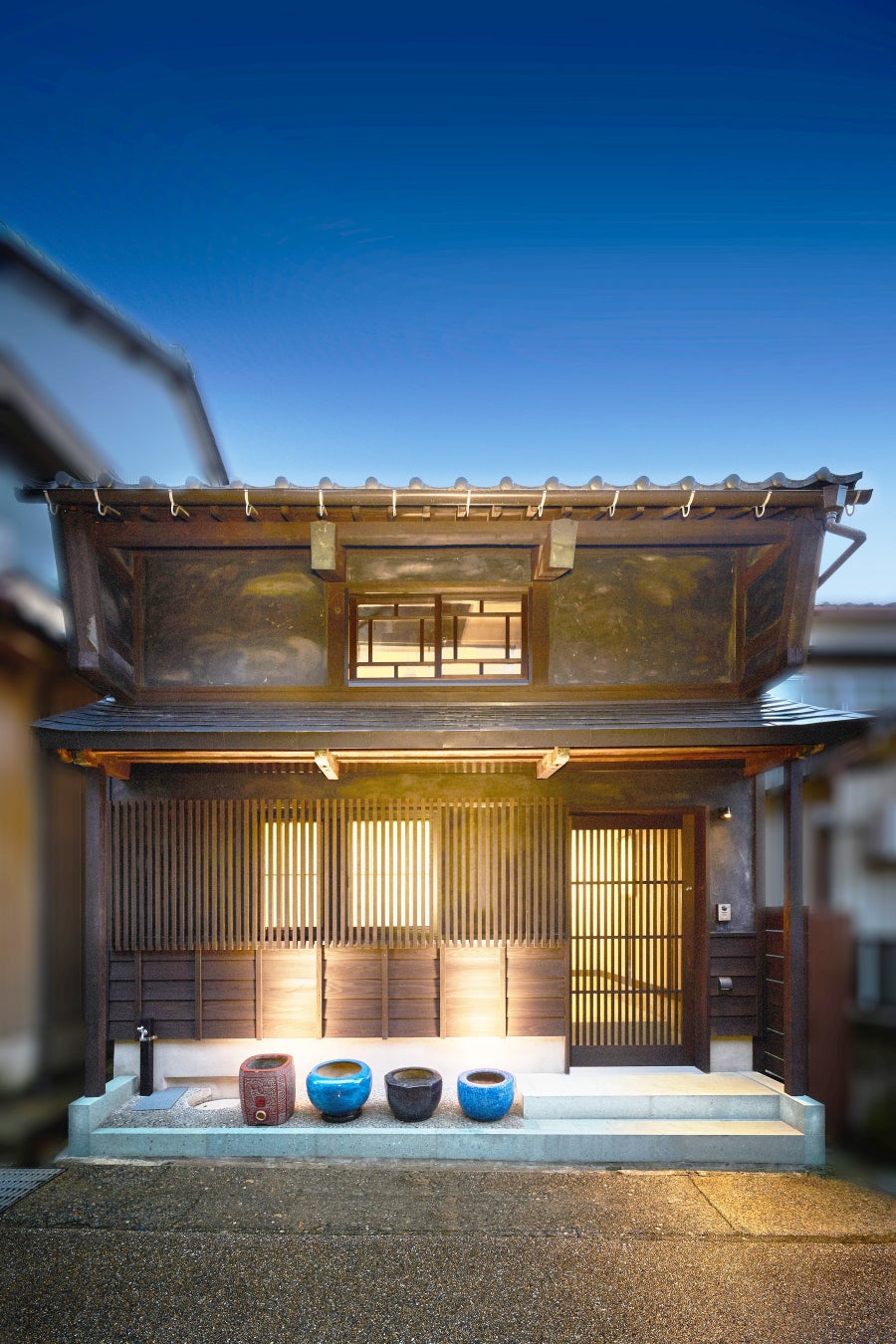 三国湊は福井県北部、九頭竜川の河口に位置し、北前船交易がもたらした文化や独自の建築様式が残っています。三国湊の特徴的な「かぐら建て町家」や日本の伝統的建築「平入造」「入母屋造」をリフォームし、地域に点在する町家を客室とする宿泊施設にしました。改修は耐震性の向上と古民家の魅力を高めることをベースに福井県でしか採掘できない「笏谷石(しゃくだにいし)」や福井県産の木材を活用しました。