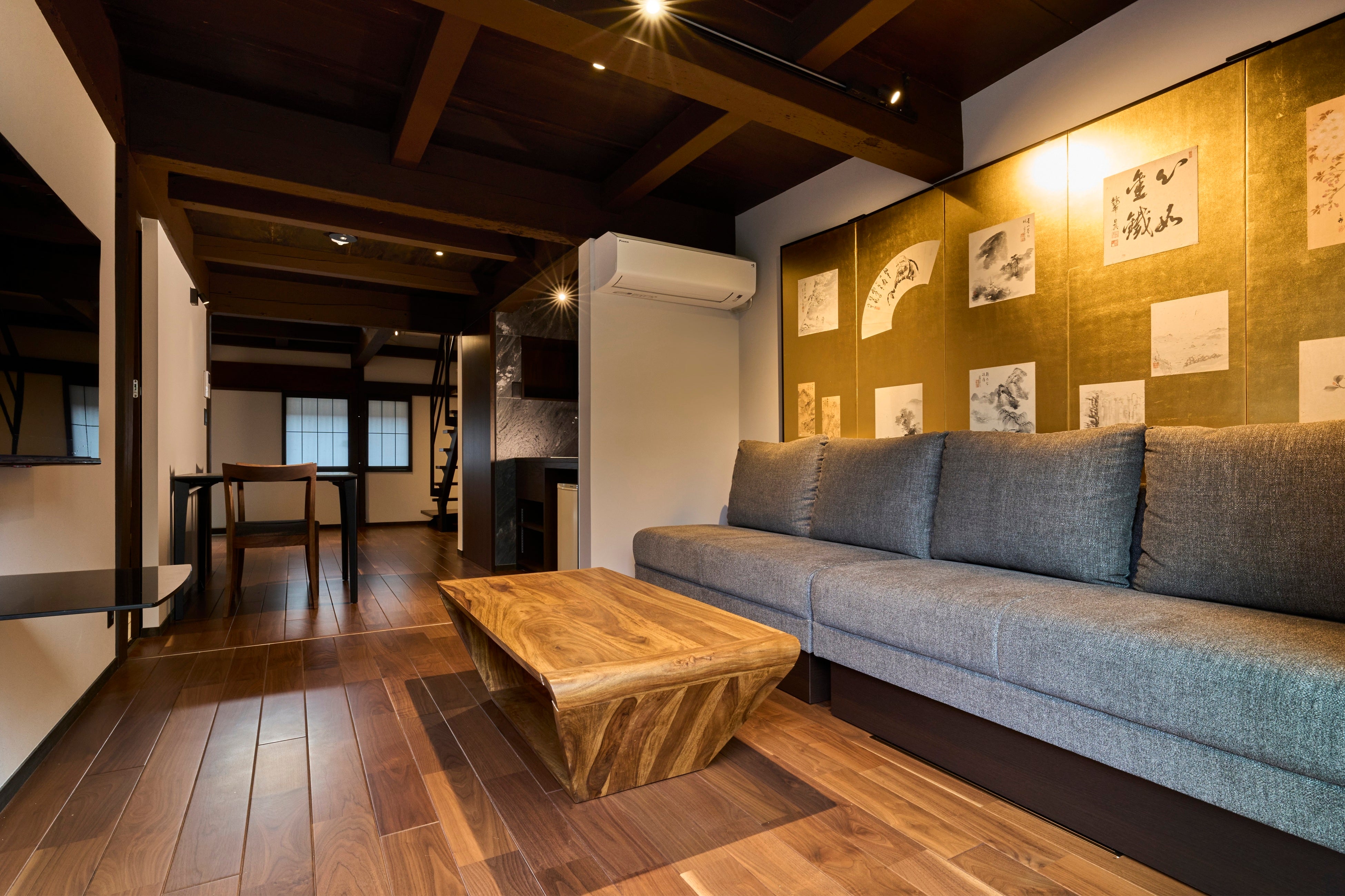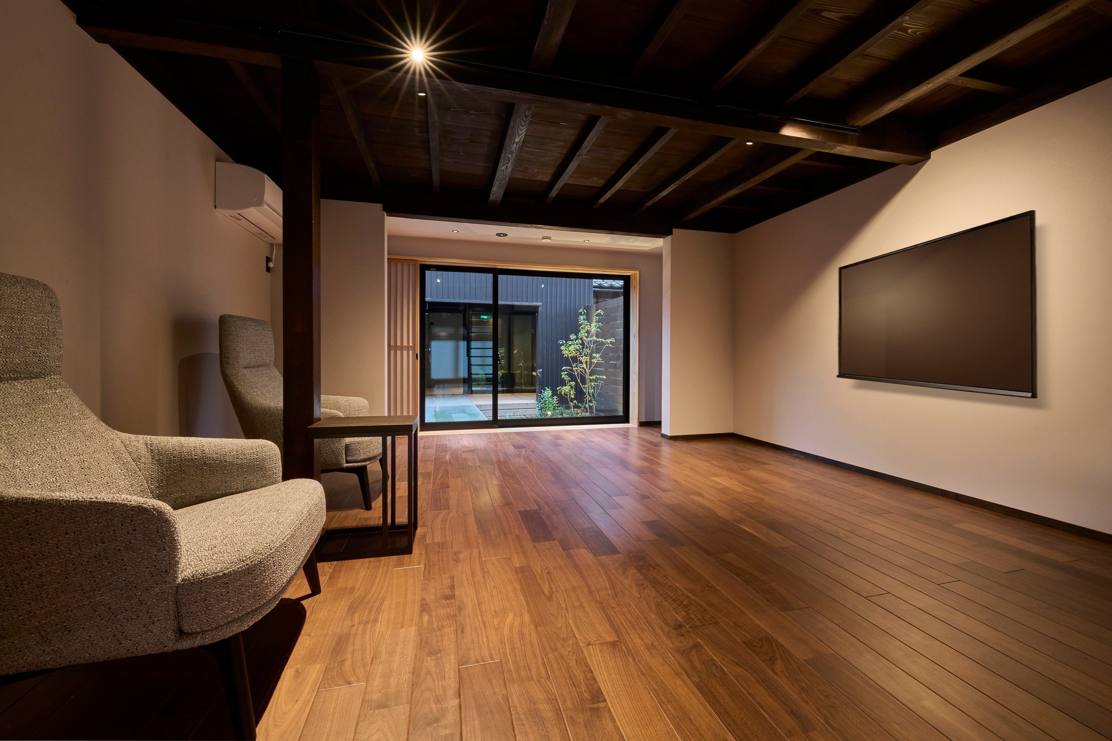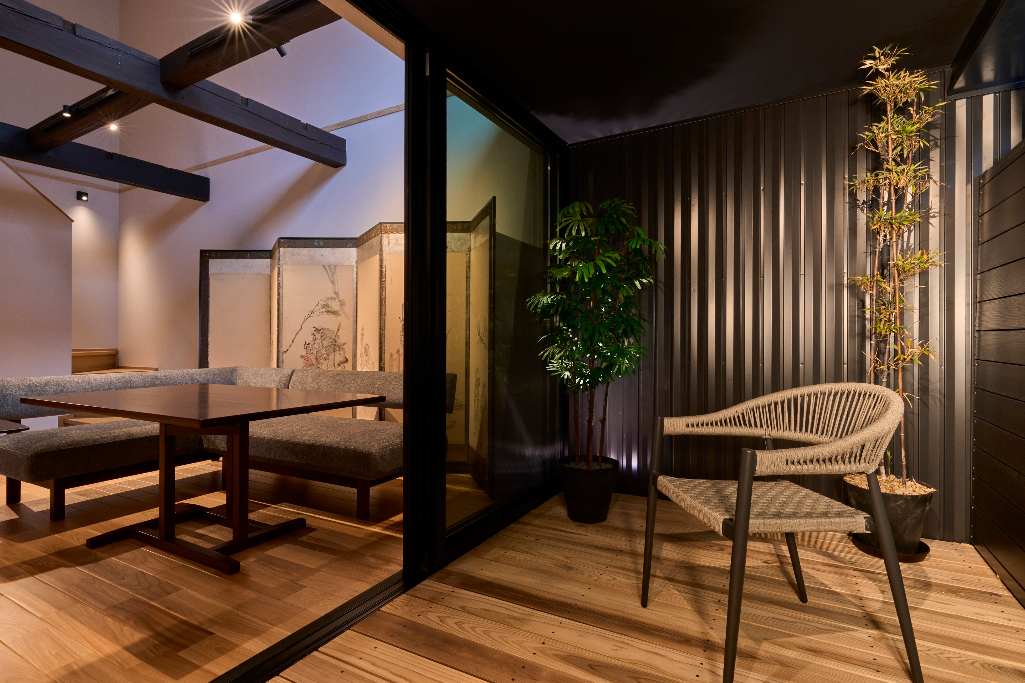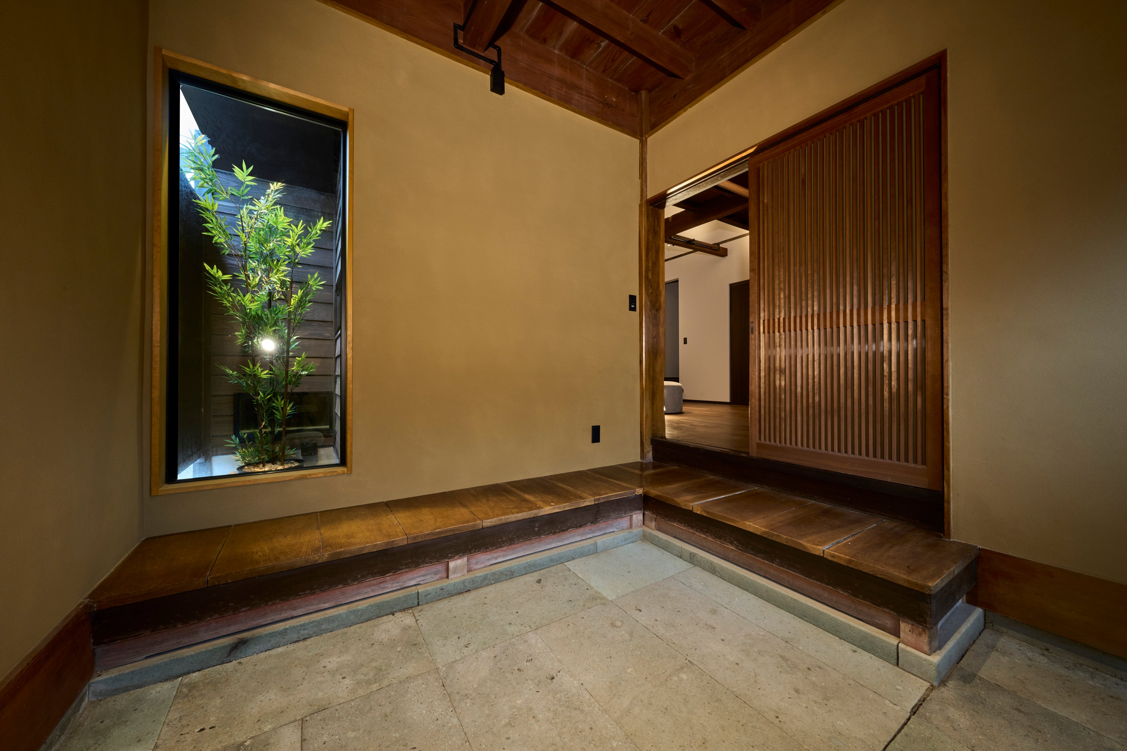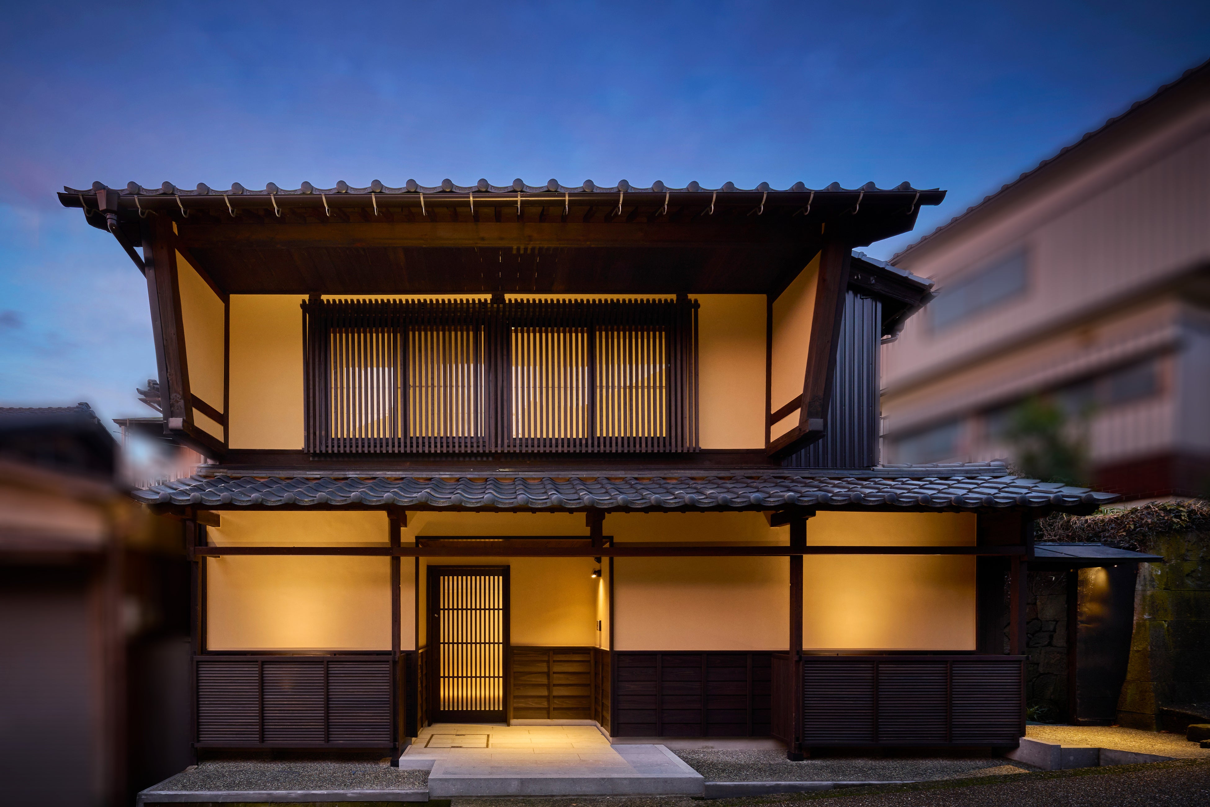 町家ホテルの外観と内装(明治後期ごろに建築された元和菓子店をリフォーム)