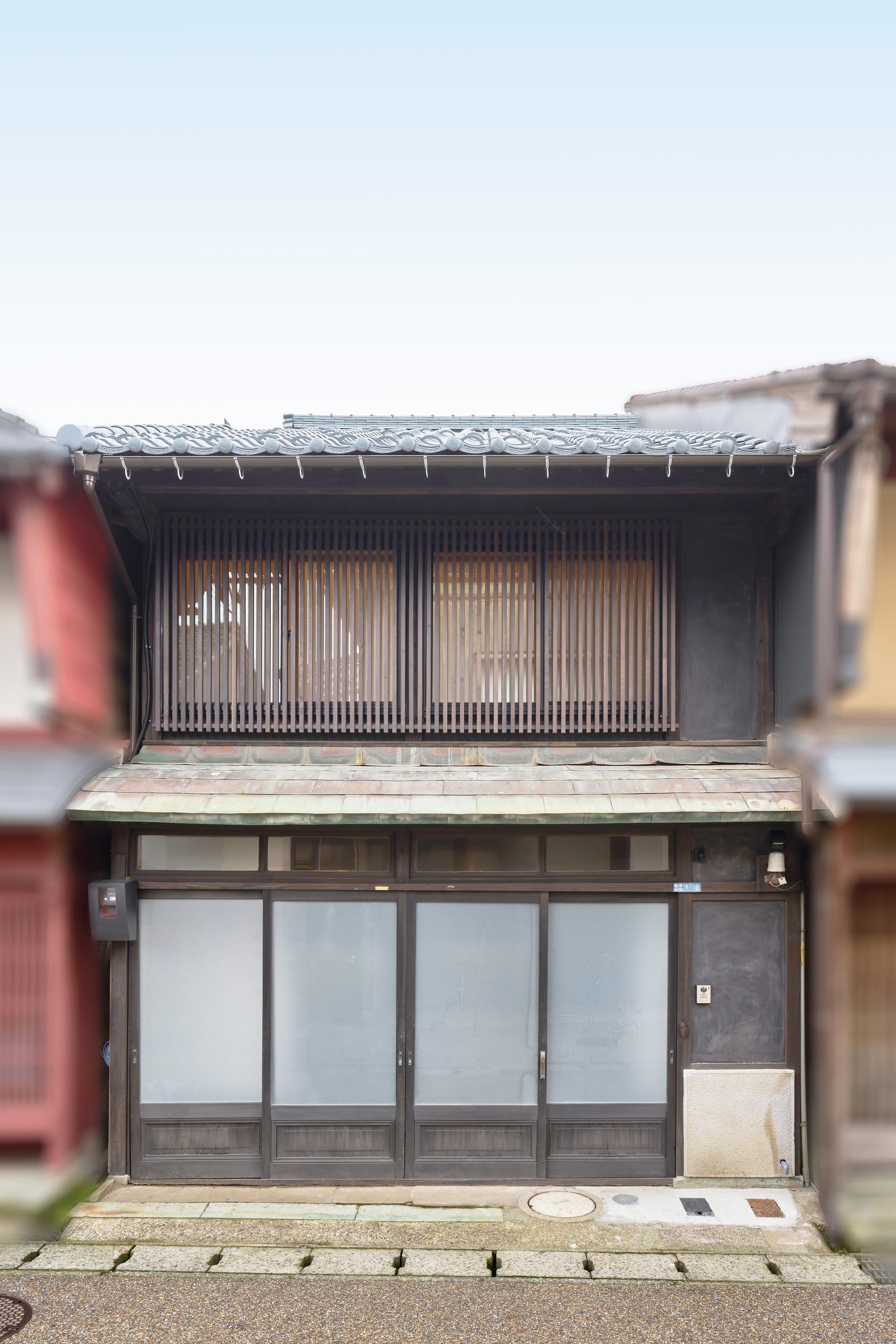 外観 : かぐら建て。小屋根、袖壁が残り、軒先が低く三国の典型的な町家造りの建物。