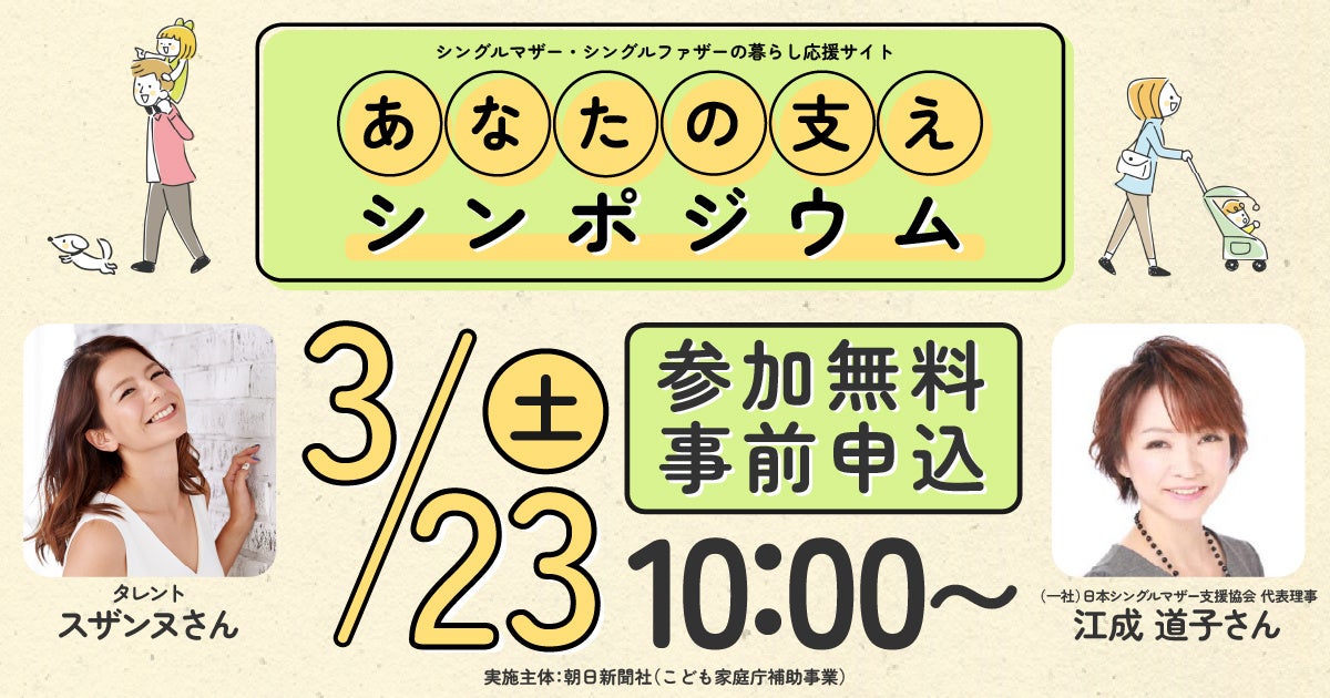 3月23日(土)開催の「「あなたの支え」シンポジウム」第二部で、自治体の取組事例 共有座談会のゲストスピーカーとして日本シングルマザー支援協会代表理事江成道子が選ばれました。