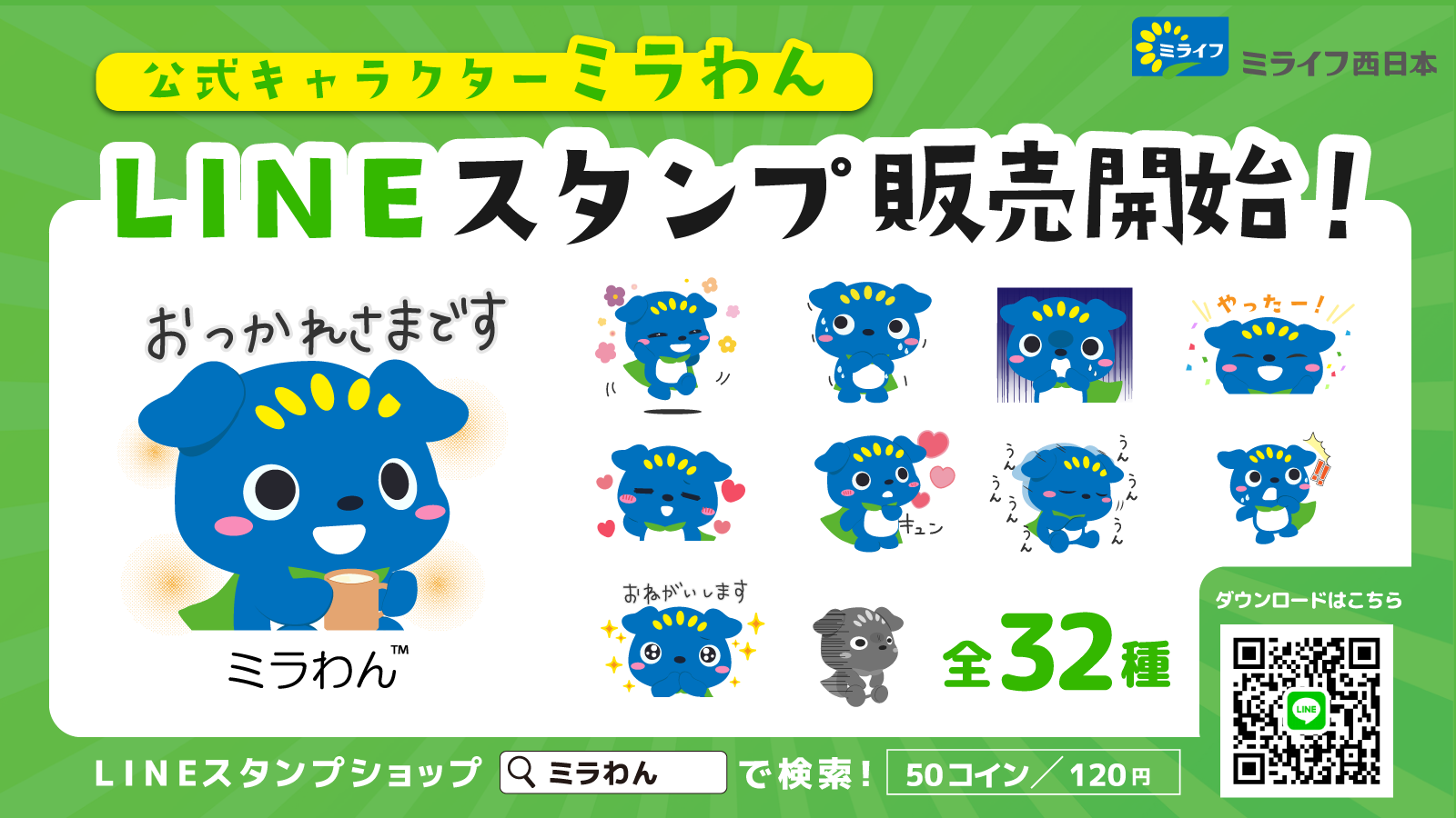 100点以上の公募によって選ばれたミライフ西日本公式キャラクター『ミラわん』LINEスタンプが登場!