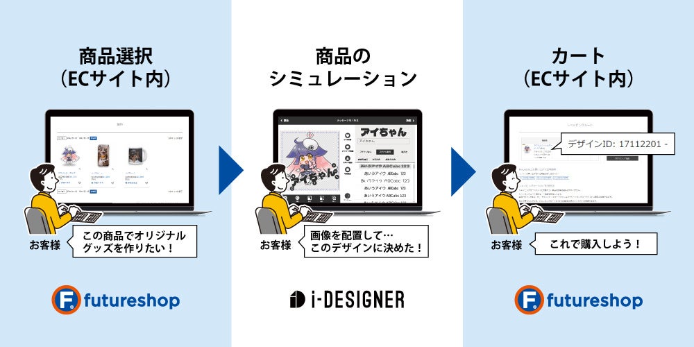 株式会社テクノア(本社:岐阜県岐阜市、代表取締役:山﨑 耕治、以下:「テクノア」)が提供するWebデザインシミュレーター「i-DESIGNER」が株式会社フューチャーショップ(本社:大阪市北区、代表取締役:星野 裕子、以下「フューチャーショップ」)が提供するSaaS型ECサイト構築プラットフォーム「futureshop」の提携サービスとして採用されました。これにより、「futureshop」または「futureshop omni-channel」(以下、futureshop)をご利用中のEC事業者様にi-DESIGNERを活用いただくことで、お客様による完成イメージの事前確認やイメージの不一致による返品リスクやクレームを防止できます。
