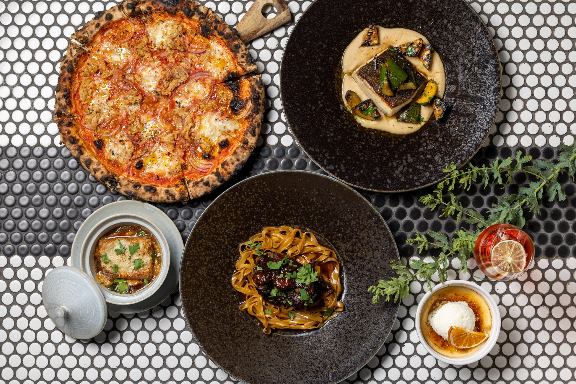 Mr. Maurice’s Italian & Rooftop Barは、アメリカでトップのイタリアンシェフとして知られる巨匠マーク・ヴェトリが監修するレストランです。春の訪れとともに、新鮮な食材を活かした新メニューを開発しました。シチリア風の濃厚なトマトソースと厳選された具材をたっぷりトッピングしたシシリアーナピザ、じっくり炒めた甘みのある玉ねぎに濃厚なチーズと香ばしいバゲットを添えたオニオングラタンスープ、長時間煮込んだ牛テールの旨みがたっぷり絡んだフェットチーネ 牛テール煮込み、外は香ばしく中はしっとりと仕上げたカンパチのロースト、そして芳醇なブラッドオレンジの酸味と濃厚なカスタードの甘みが絶妙に調和するブラッドオレンジのカタラーナなど、この季節ならではの味わいをお楽しみいただけます。