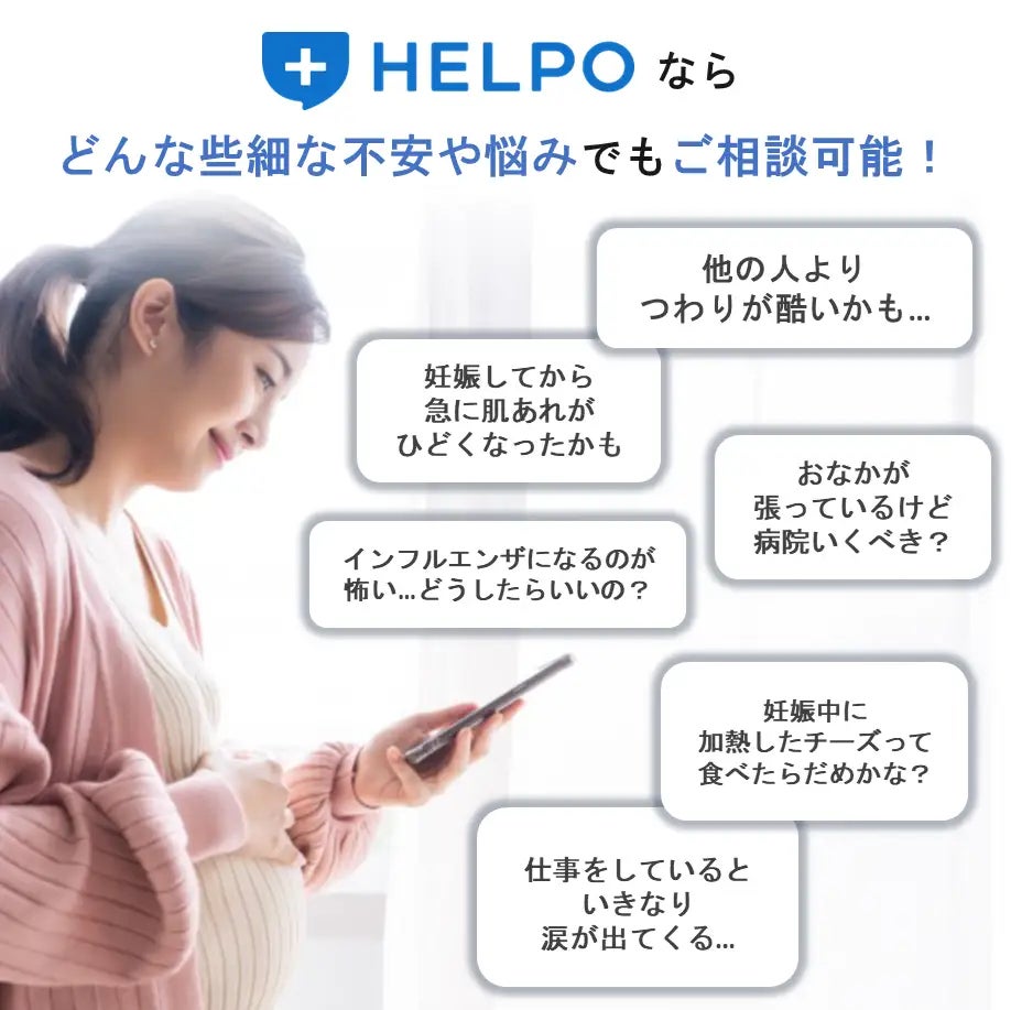 「HELPO(ヘルポ)」は未病と呼ばれる体調が悪くなり始めたときや、ちょっとした身体の不安や不調を医師・看護師・薬剤師などの医療専門チームに24時間365日、気軽に何度でも相談できるオンラインヘルスケアサービスです。急な体調不良やこころの悩み、育児やダイエットなど、さまざまな不安や悩みを相談できます。さらに医師の診療が必要な場合は、HELPOのアプリ内でそのままオンライン診療※の受診も可能。相談から受診までワンストップで健康管理ができるヘルスケアアプリです。