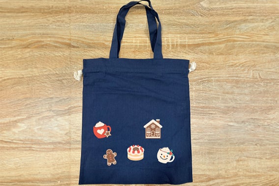クリスマスモチーフの特殊なデザインシートを使って、自由にデコレーションし、オリジナルのトートバッグをお作りいただけます。