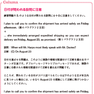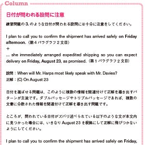 「日付が問われる設問」や「位置選択問題」といったTOEIC(R) L&Rテストならではの設問の解き方や、「選択肢の副詞、形容詞に注意」といったTOEIC(R) L&Rテストならではの注意点などをまとめたコラムもあります。