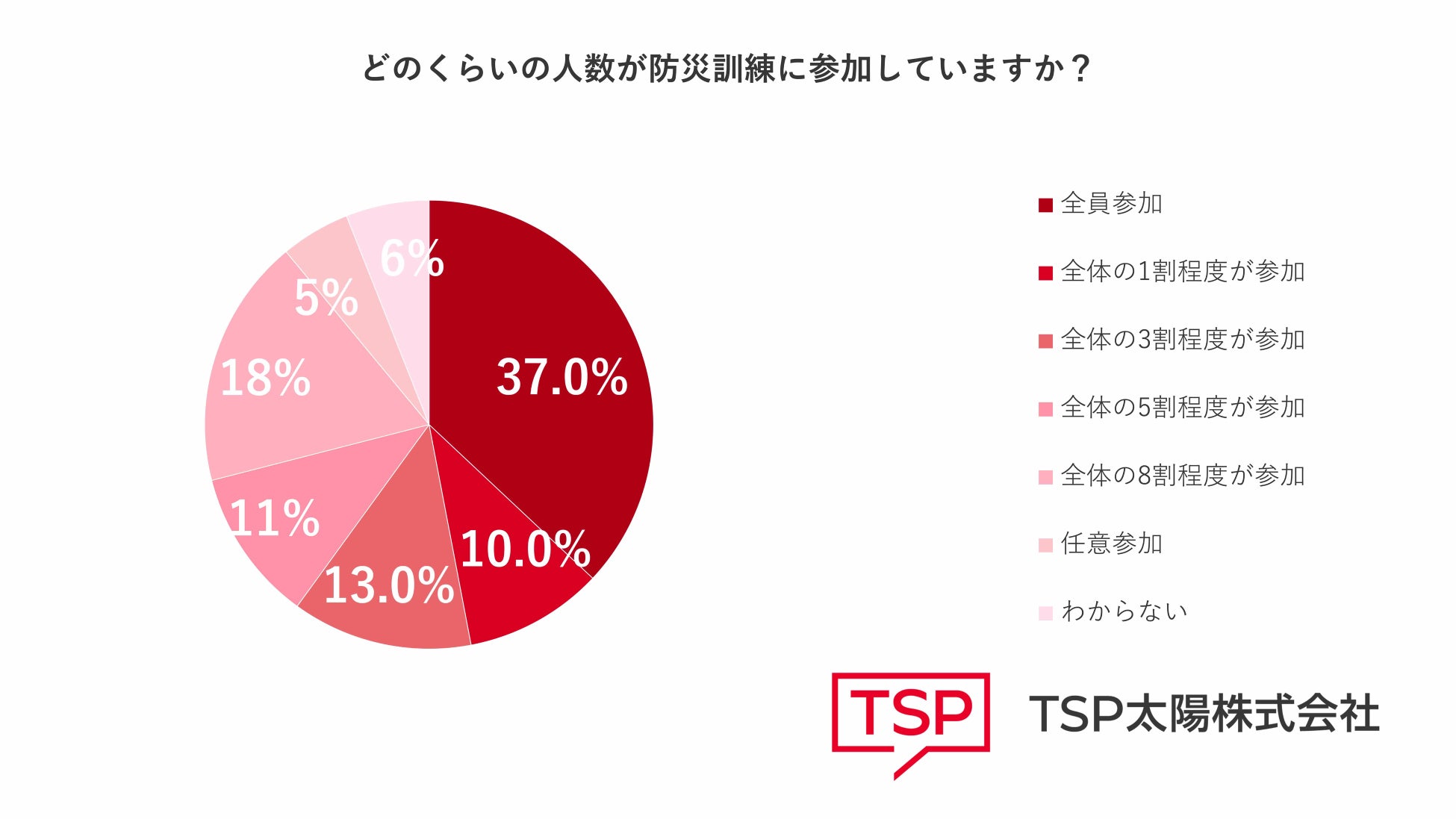 ■参加意識は高いものの、実際に防災訓練に全員が参加しているという回答は37%にとどまる結果に