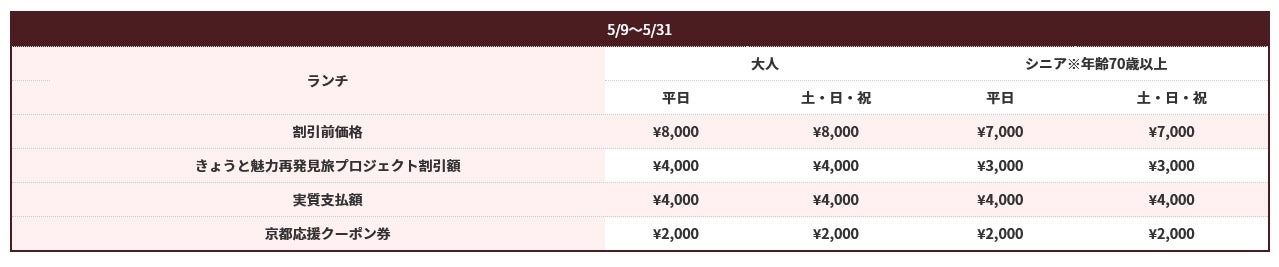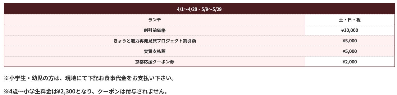 【5/9から】ランチ料金京都応援クーポン2,000円分付