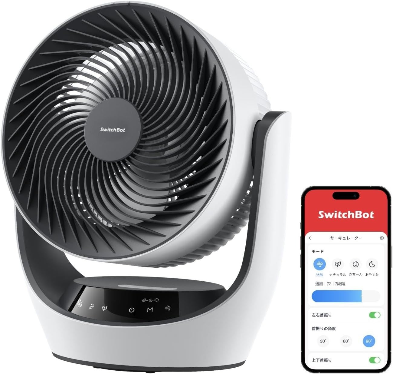スマホのアプリやスマートスピーカーから遠隔操作したり、オートメーション設定で自動操作したりできます。風速は1~100レベルまで無段階で操作でき、「欲しい風をより自由に」お部屋の隅々まで行き渡らせることができる優れものです。バッテリー内蔵で、配線不要なため、置き場所も自由自在。