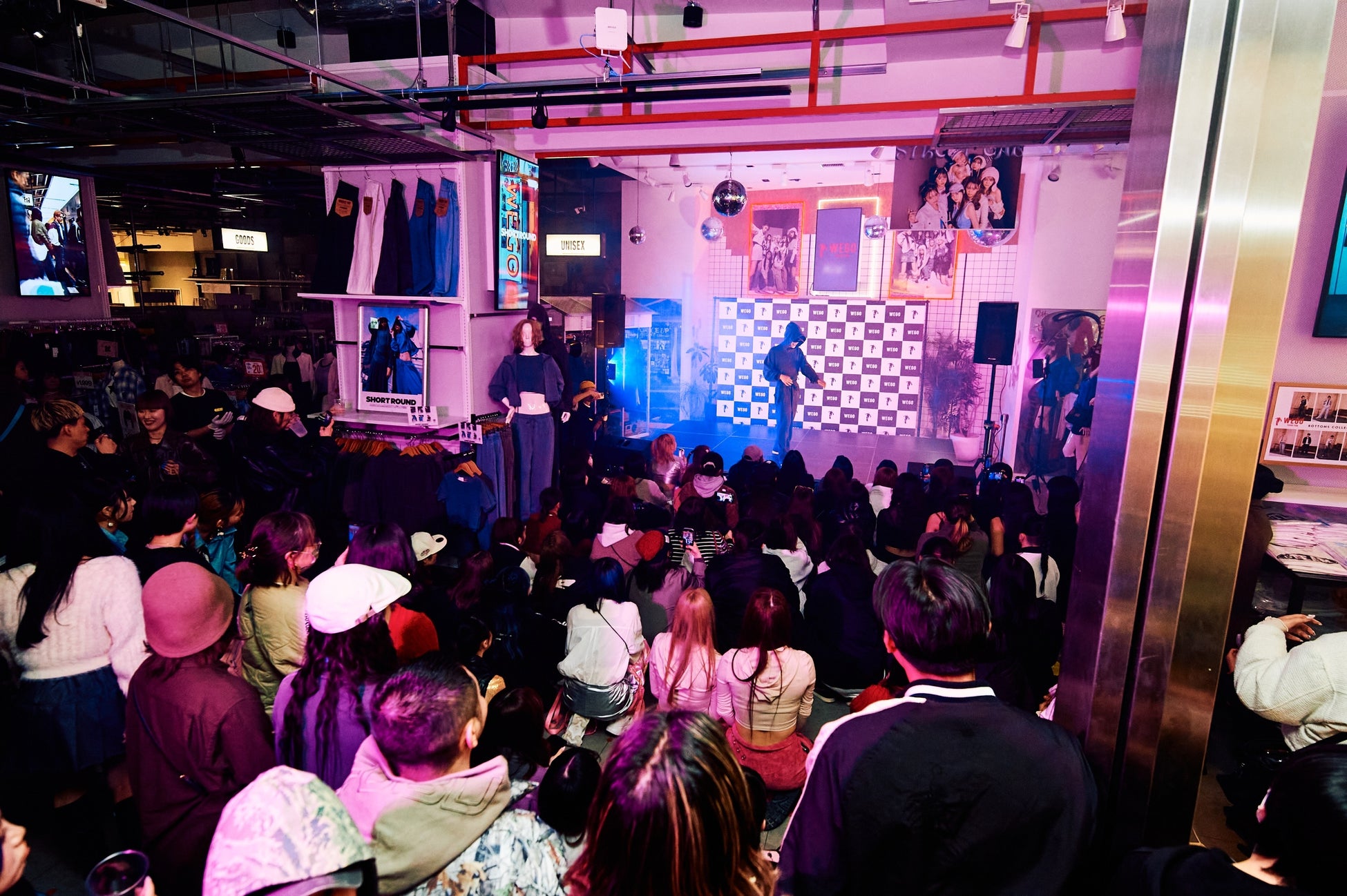 開場間もなくから観覧のお客様が続々と来店。会場となるWEGO 原宿竹下通り店は熱気に包まれ、エンタテイナー育成スクールとして現在までにプロで活躍する卒業生を多く輩出している“EXPG STUDIO”との協業プロジェクトによるダンスウェアライン<SHORT ROUND>のお披露目となるステージでは、EXPG Labが登壇し、盛り上がりは最高潮を迎えました。