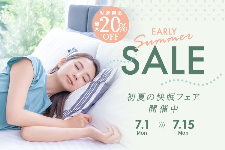 夏もぐっすり眠ろう!7/15(月)までSALE!対象アイテムが最大20%OFFに!初夏の快眠フェアを開催!