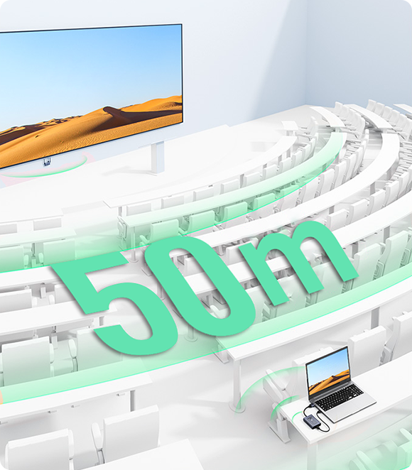 ▶ 50mの超長距離を伝送可能で、家庭以外に仕事場でも大活躍!