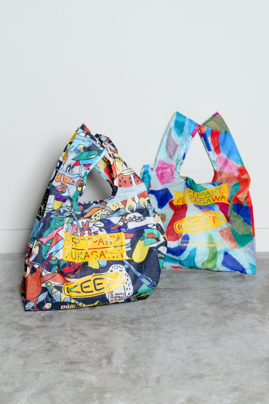 第2弾となる今回は、KEENの夏を代表する「YOGUI ARTS」と「SHANTI」にプラスして、エコバッグにも作品が落とし込まれました。