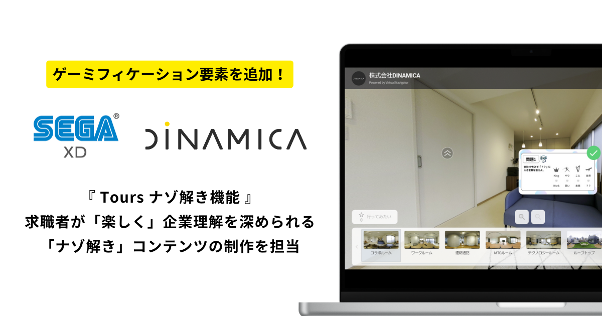 セガ エックスディー、DINAMICAがβ版を提供開始する 『 Tours ナゾ解き機能 』にて、求職者が楽しく企業理解を深める「ナゾ解き」のコンテンツ制作を担当