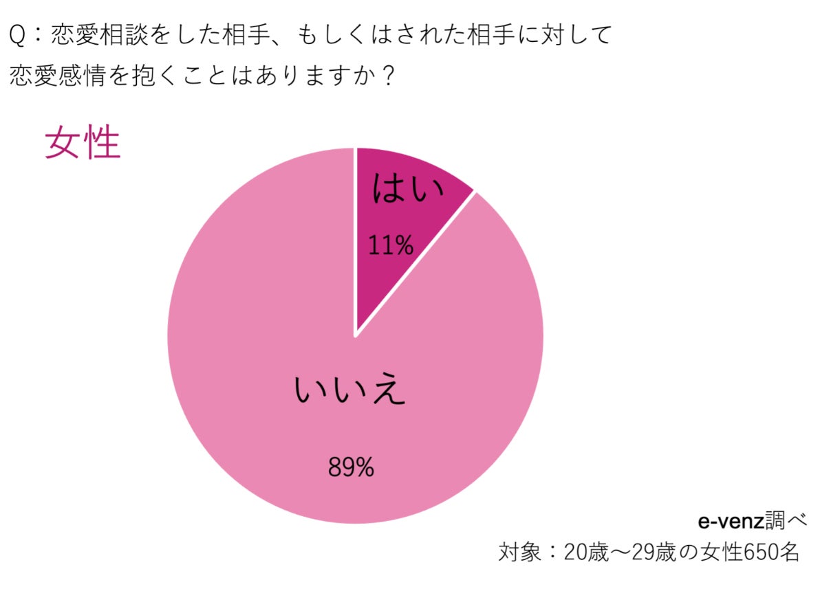 恋愛相談相手やその相手への感情を調査すべく、今回e-venzでは20代の独身男女を対象に恋愛相談に関するアンケート調査を実施しました。