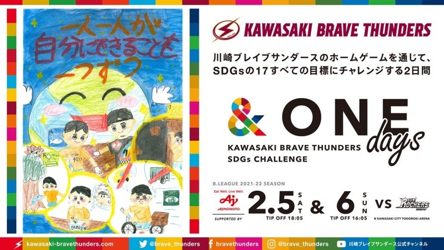 その第一歩として、2022年2月5日(土)、6日(日)に開催するB.LEAGUE 2021-22 SEASON 第21節 サンロッカーズ渋谷戦(会場:川崎市とどろきアリーナ)の2日間を、SDGsの17すべての目標にチャレンジする『&ONE days(アンドワンデイズ)Supported by 味の素』として開催いたします。