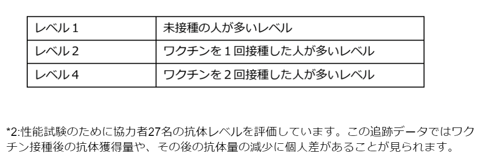 この製品は、新型コロナウイルスに対する抗体価を測定することを目的としています。現在新型コロナウイルスに罹患しているかを確認するPCR検査や抗原検査とは異なり、ワクチン接種後に抗体がどれくらい保持できているかを定量的に確認するものです。