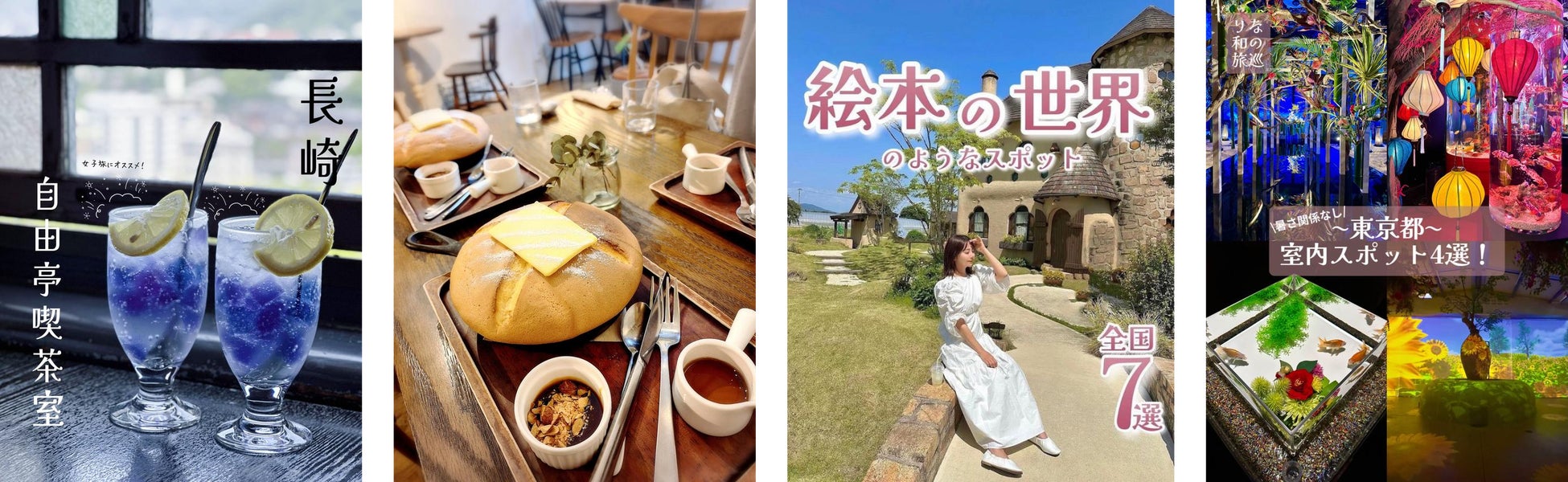 写真引用元(左から、レトロ喫茶店 / 巨大パンケーキ / 絵本の世界のようなスポット / 雨の日デートプラン )
