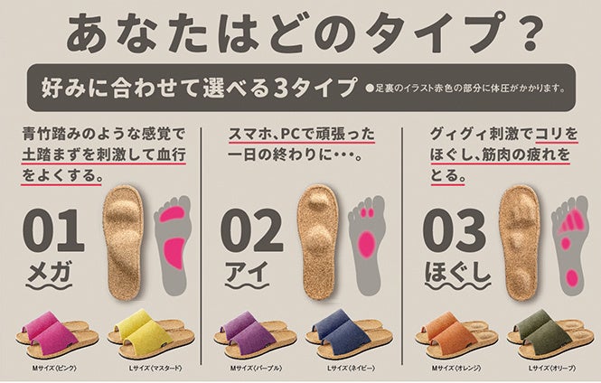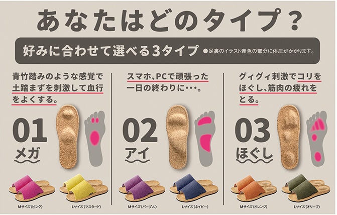 「ながら」でできるお家でカンタンフットケア。好みに合わせて選べる3タイプ「ヘルシールームサンダル ふみっぱ」