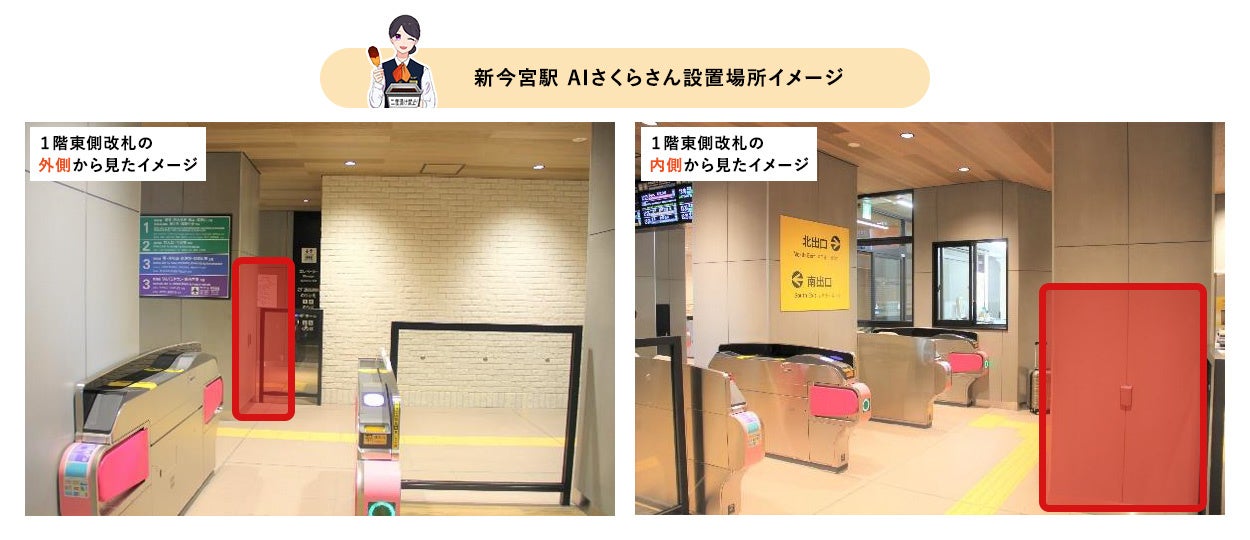さらに、2022年4月22日(金)より南海「新今宮駅」の1階改札内でも、AIさくらさんによる案内業務が開始されます。新今宮駅は、4月22日(金)に当駅東側で「OMO7(おもせぶん)大阪 by 星野リゾート」の開業を予定するなど、これまで以上に様々な地域からお客さまがお越しになると想定されるため、今回の新規設置に至りました。