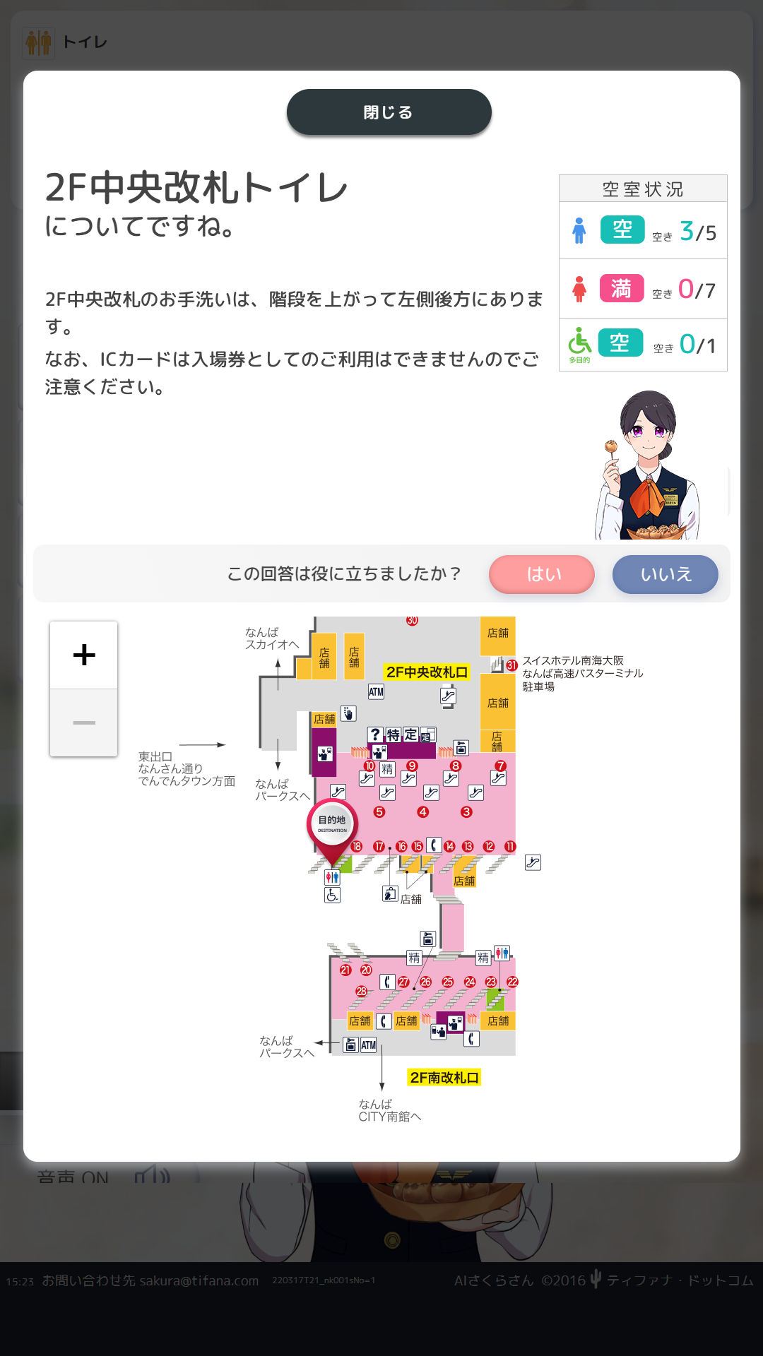 〜新機能「トイレの空き情報配信」と「クイズゲーム」を新たに搭載。AIさくらさんが串カツを持ってお出迎え!〜