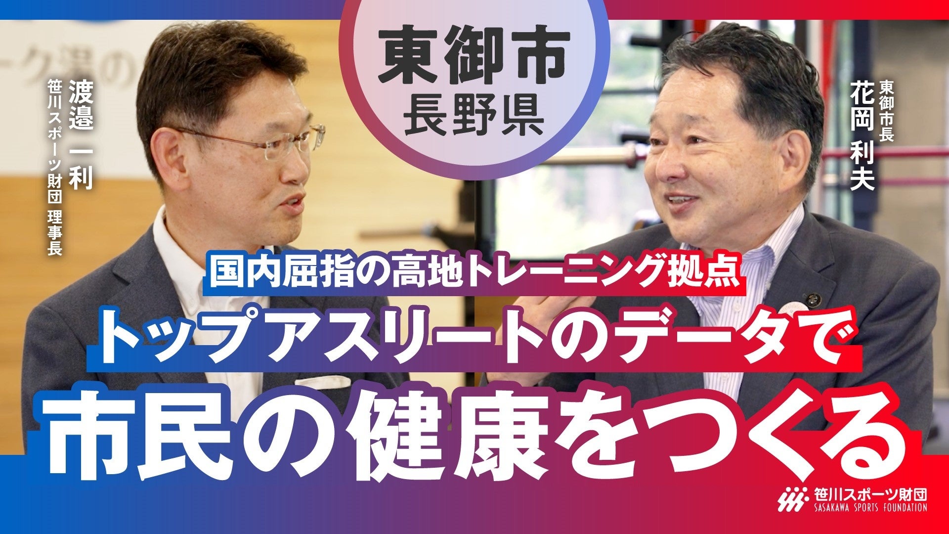 東御市のシンクタンクとしての役割を担う「身体教育医学研究所」では、トレーニング・食事・睡眠等の情報発信や環境整備を通じて、高地トレーニング施設に訪れるトップアスリートの競技力の向上に貢献。さらには、高地トレーニングの効果を地域住民の健康づくりに役立てるプログラムの開発・実践も行い、トップアスリートと地域の方々の元気をつくる橋渡し役として、「ライフパフォーマンス」の向上にも貢献しています。適地適政策を大事にしながら、まちづくりを進める花岡市長に、東御市のスポーツによるアクティブなまちづくりについて詳しく教えていただきました。
