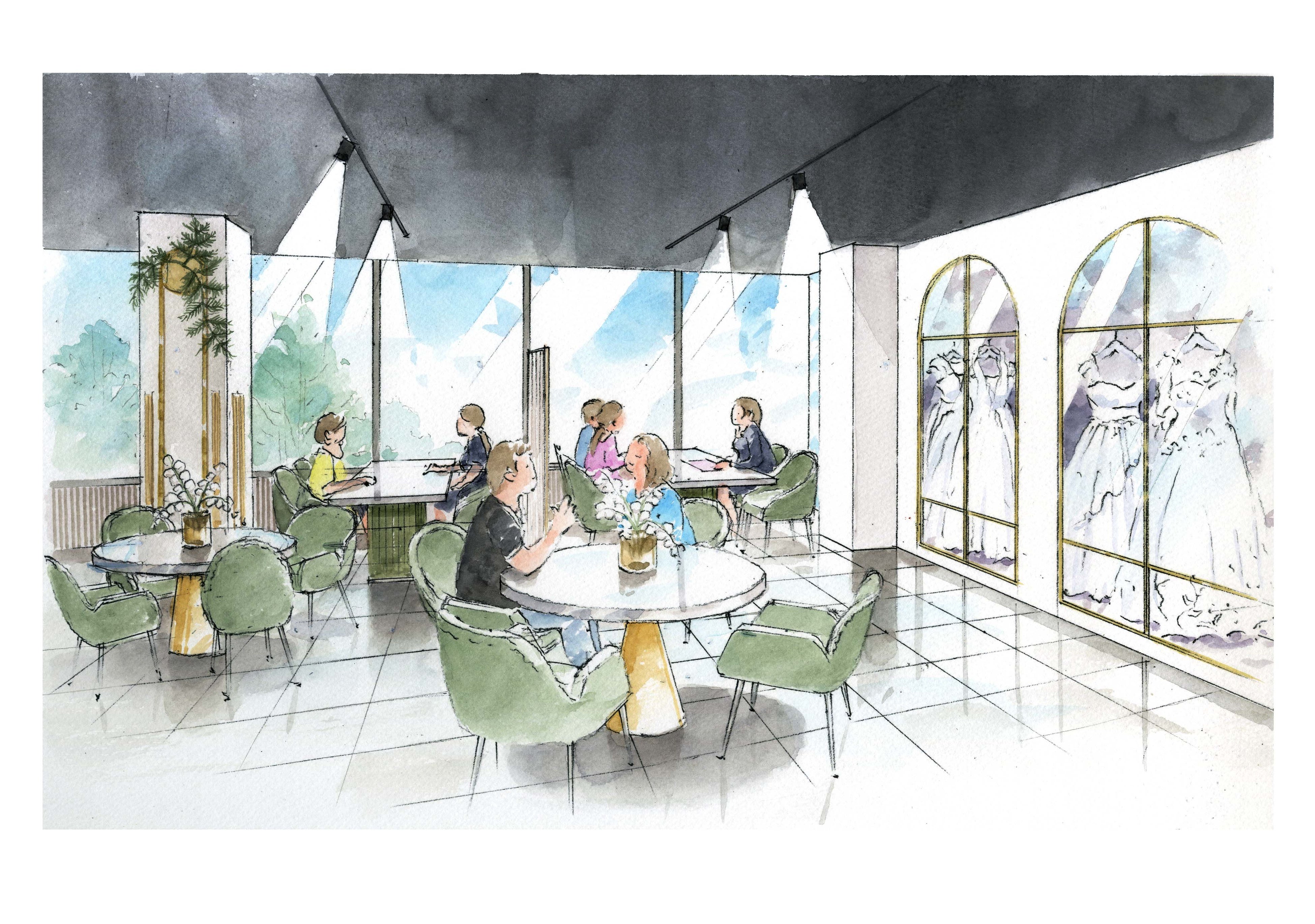 広々と開放感のあるお打ち合わせスペースも、名古屋駅前店のこだわりのひとつ。ラグジュアリーな空間でくつろいでいただきながら、専属のプランナーがお話を伺い、おふたりに合った撮影プランをご案内いたします。