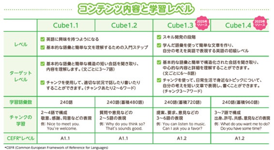 これにより、英語に興味を持つ段階から、自分の考えを英語で表現できる初級レベルまで、