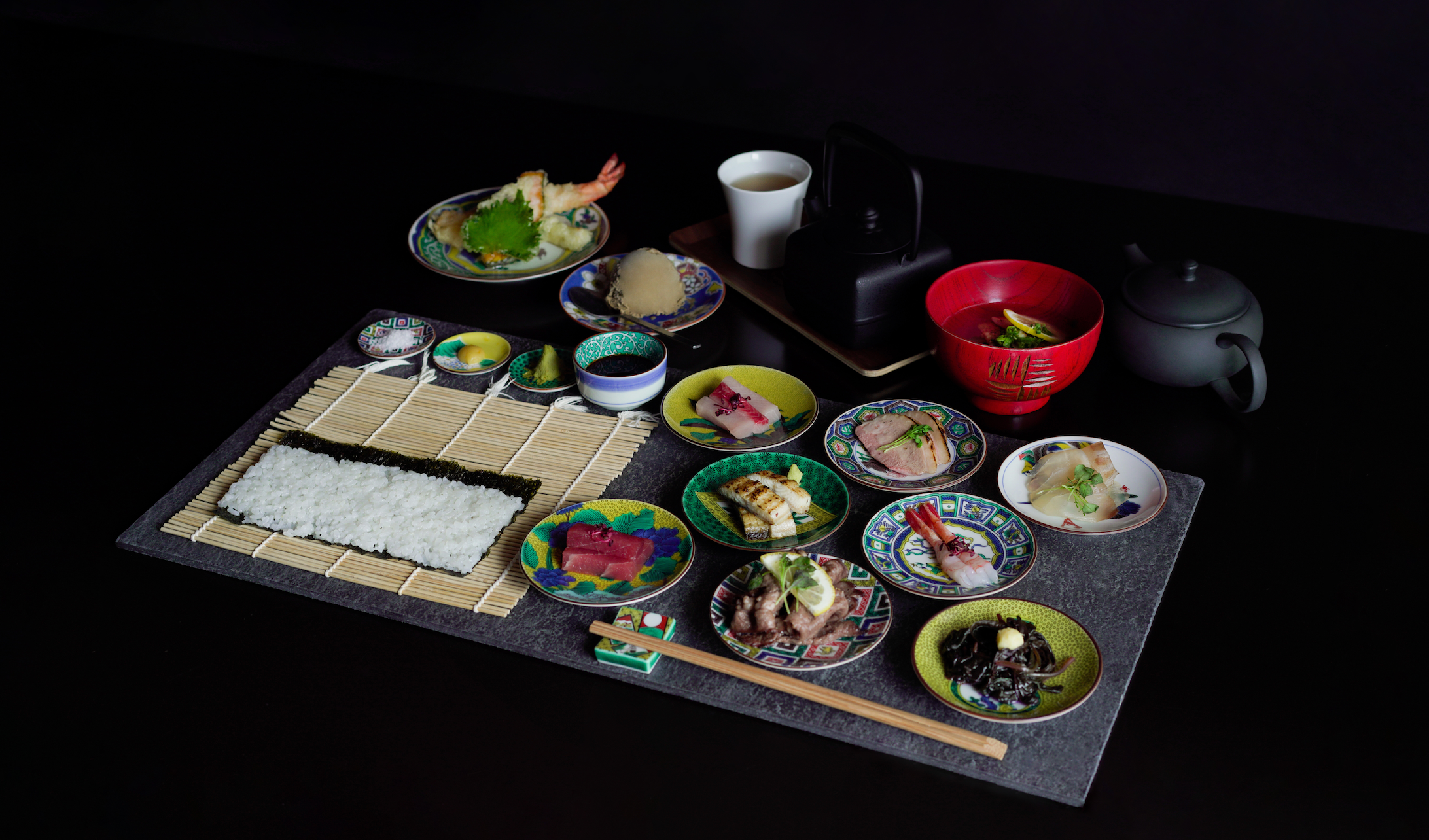 日本の伝統的な、細巻き寿司や天ぷら、お茶を現代的なビジュアルに落とし込み、視覚・味覚・そして体感する現代創作和食料理店。ここ金沢の街で昔から親しまれてきた「細巻き寿司」を、「自分の手で完成させて食べる」という行為も楽しめる体感型レストランです。天ぷらや様々な種類の日本茶や味噌汁など、日本の伝統的な食文化を、カジュアルにお楽しみいただけます。