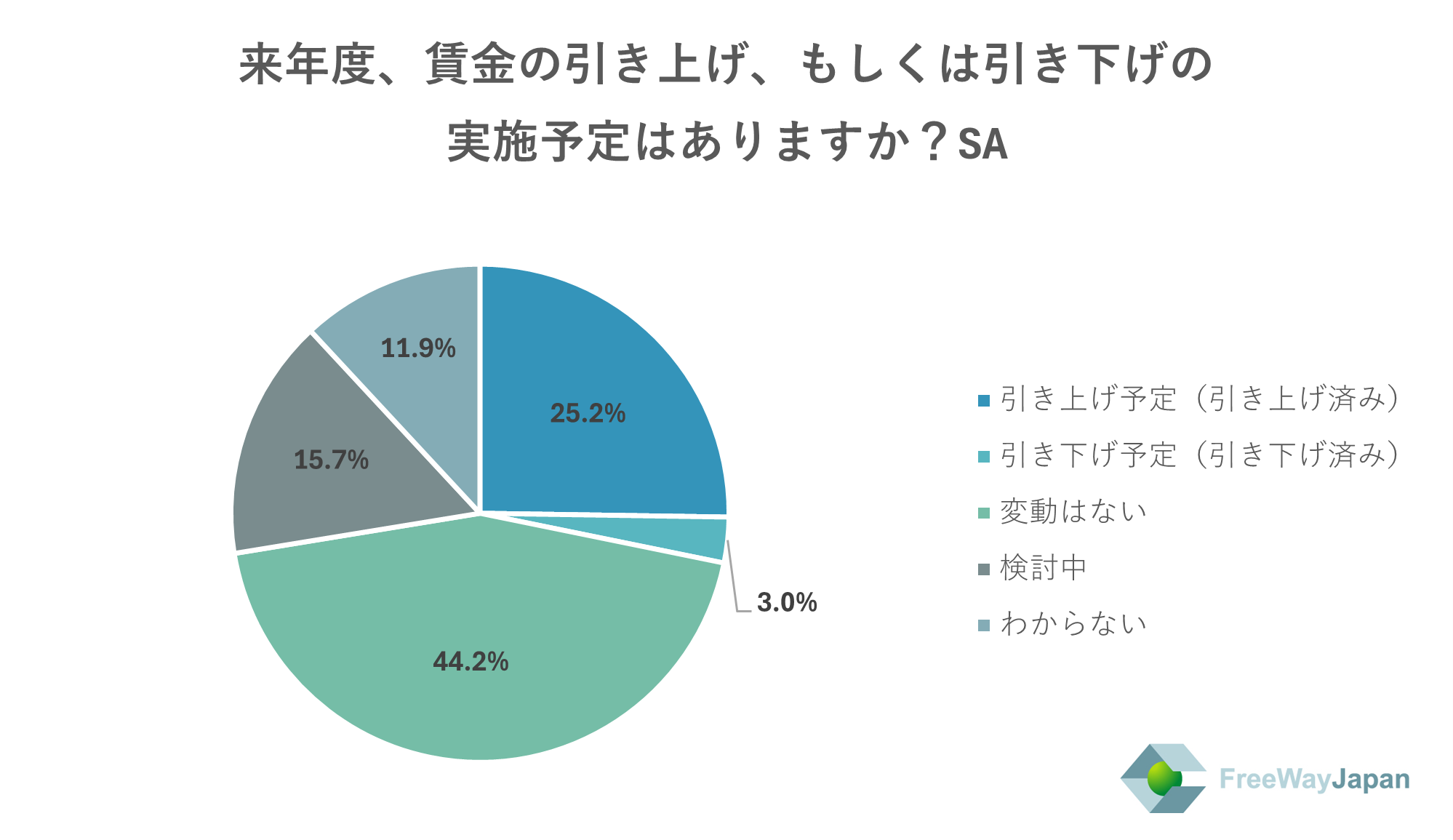 ◇来年度の賃金の引き上げ/引き下げ予定 「変動なし」44.2%、「引き上げ予定」25.2%、「引き下げ予定」3.0%