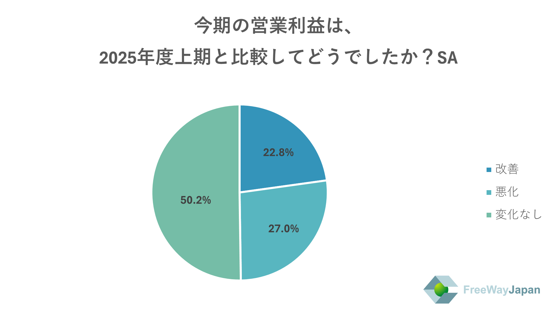 今期の営業利益は2025年度上期と比較してどうだったか聞いたところ、「変化なし」が50.2%、「悪化」が27.0%、「改善」が22.8%という結果だった。