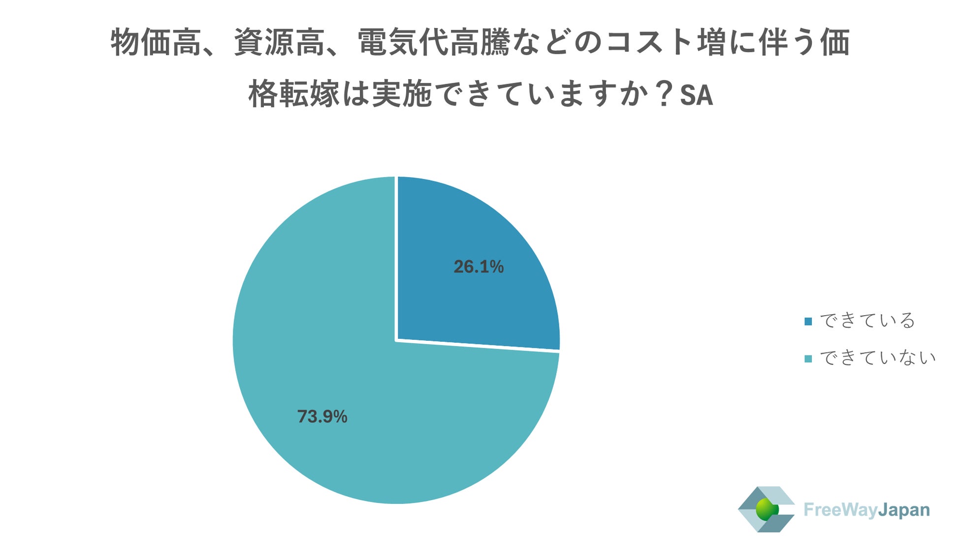 物価高、資源高、電気代高騰などのコスト増に伴う価格転嫁は実施できているか聞いたところ、