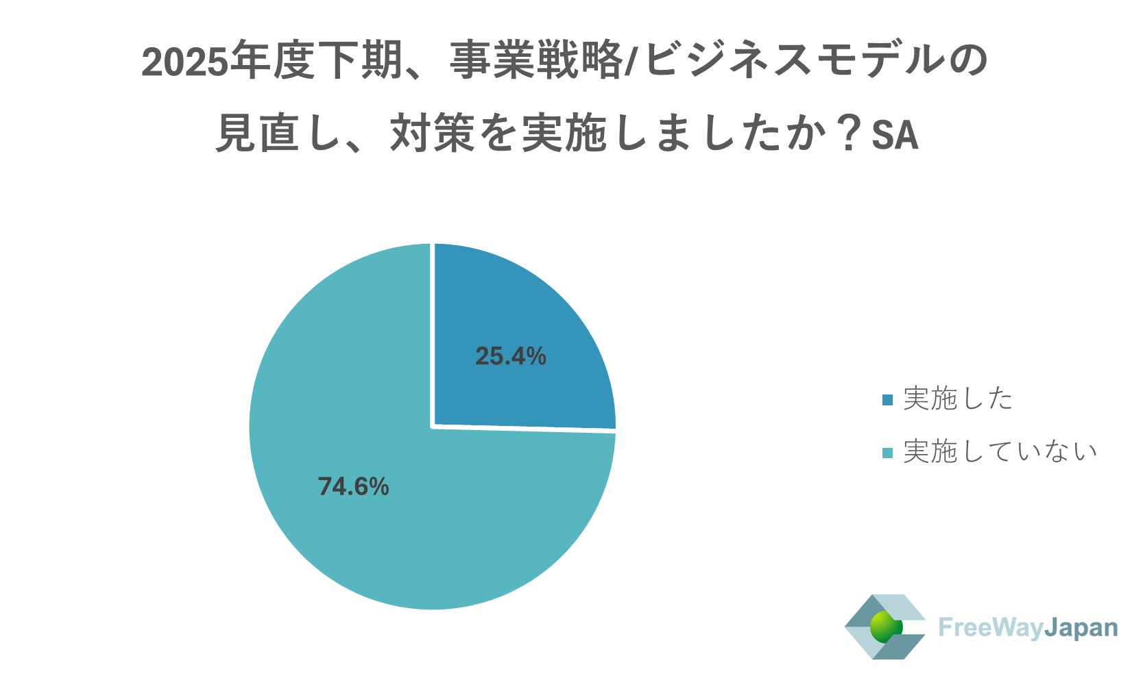 2025年度下期、事業戦略/ビジネスモデルの見直し、対策を実施したか聞いたところ、「実施していない」が74.6%、「実施した」が25.4%という結果だった。