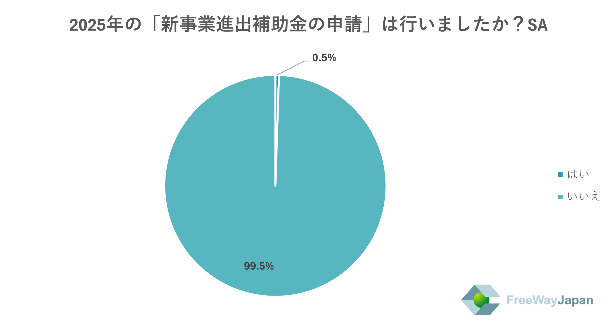 また、2025年の「新事業進出補助金の申請」は行ったか聞いたところ、「いいえ」が99.5%、「はい」が0.5%という結果だった。