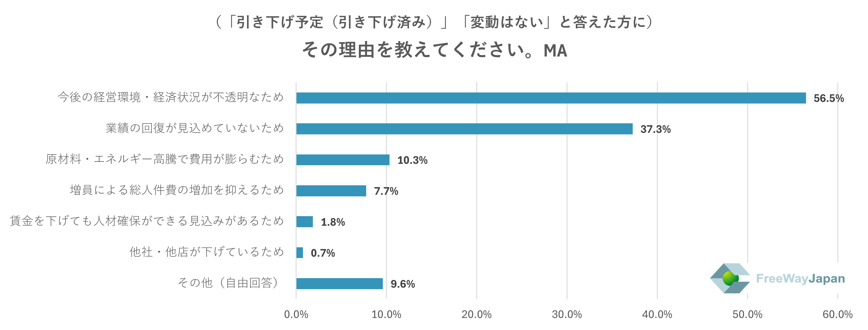 一方、「引き下げ予定」「変動はない」の理由最多「今後の経営環境・経済状況が不透明なため」