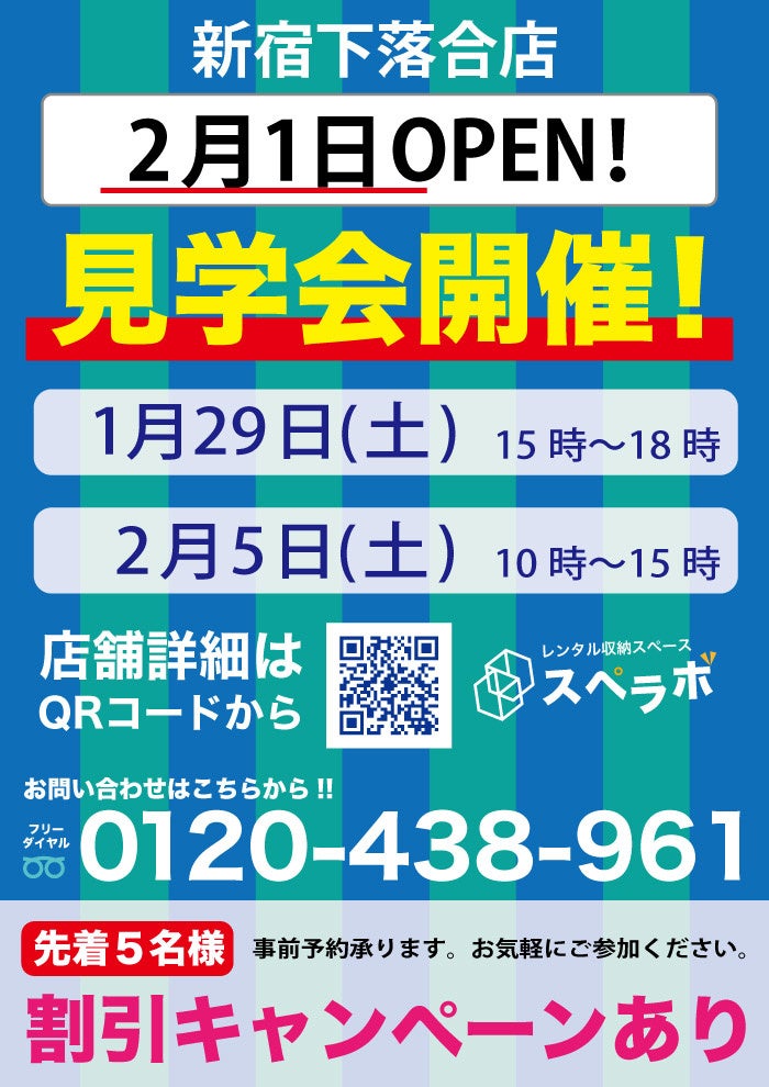 東京都心を中心に展開中のトランクルーム「スペラボ」が新宿区にOPEN!!利用者様オープン前先行見学会を1/29(土)、オープン後の見学会を2/5(土)に行わせていただきます!!