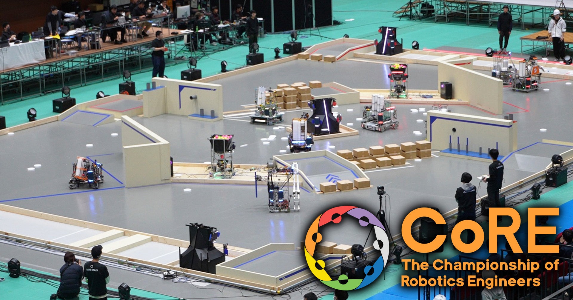 The Championship of Robotics Engineers、通称CoRE(コア)とは次世代のエンジニア”挑戦的共創人材”を育成するための、ロボット競技を核としたエンジニア選手権です。10歳以上であれば年齢制限無く、生徒・学生から現役エンジニア、初心者から経験者まで誰でも参加でき、チームで大型ロボットを開発する過程でエンジニアリングとチームワークを総合的に楽しく学べる機会を提供します。エンジニア個人やそのチーム自体の評価が最も重要であり、当日のロボット競技の結果だけではなく、チーム活動や提出資料等の総合力を加味した総合優勝制度や個人表彰制度を設けています。これにより様々な観点でエンジニア個人やチームとしての能力を測り、これまでスポットライトが当たることが少なかったエンジニア個人を評価し、本機構が定義する次世代のエンジニア“挑戦的共創人材"とチームを育成します。