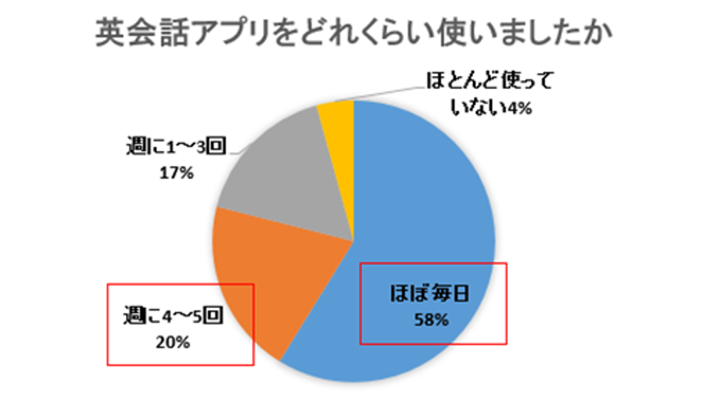 2024年1月22日から4月30日まで、石川県羽咋市内の小学校5校に通う児童560名を対象に本コンテンツの試験導入を行い、自宅学習の一環としてアプリを利用いただきました。アプリを利用した児童へのアンケート調査では、約8割が週に4回以上利用したと回答し、本コンテンツが小学生の自主的な英語学習の習慣化に寄与する結果となりました。