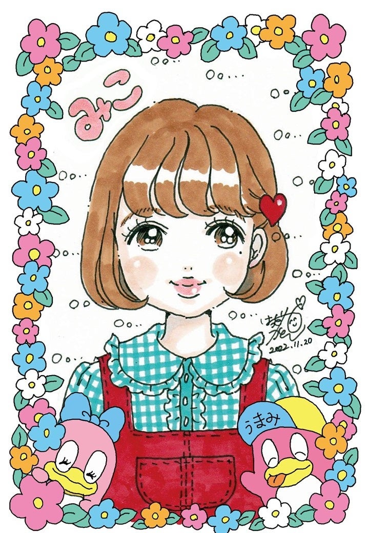 30年前を思い出すようなレトロな画風で似顔絵を描きます。