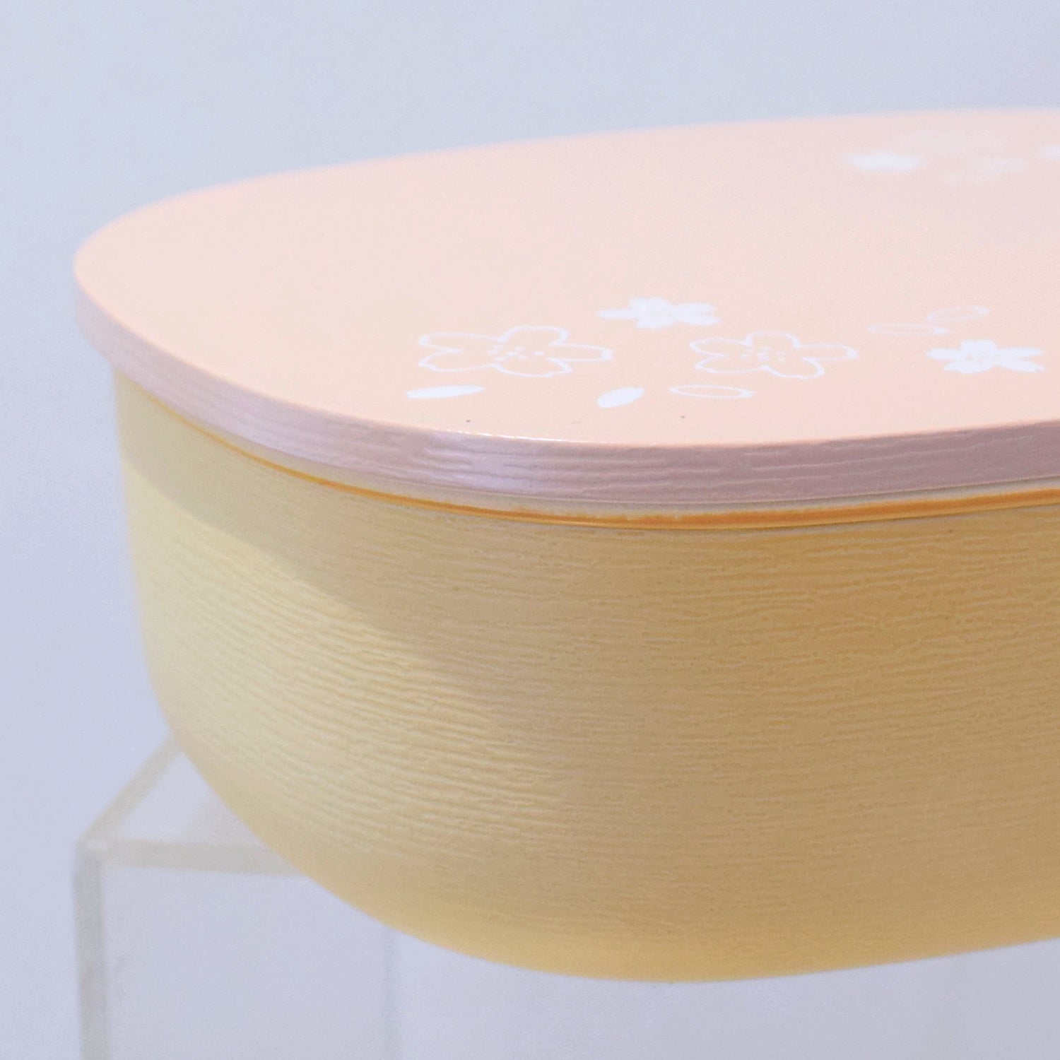 「おもむき 木目一段弁当」はフタの優しいカラーリングと本体の白木風塗装の組み合わせがナチュラルな印象の一段弁当箱。